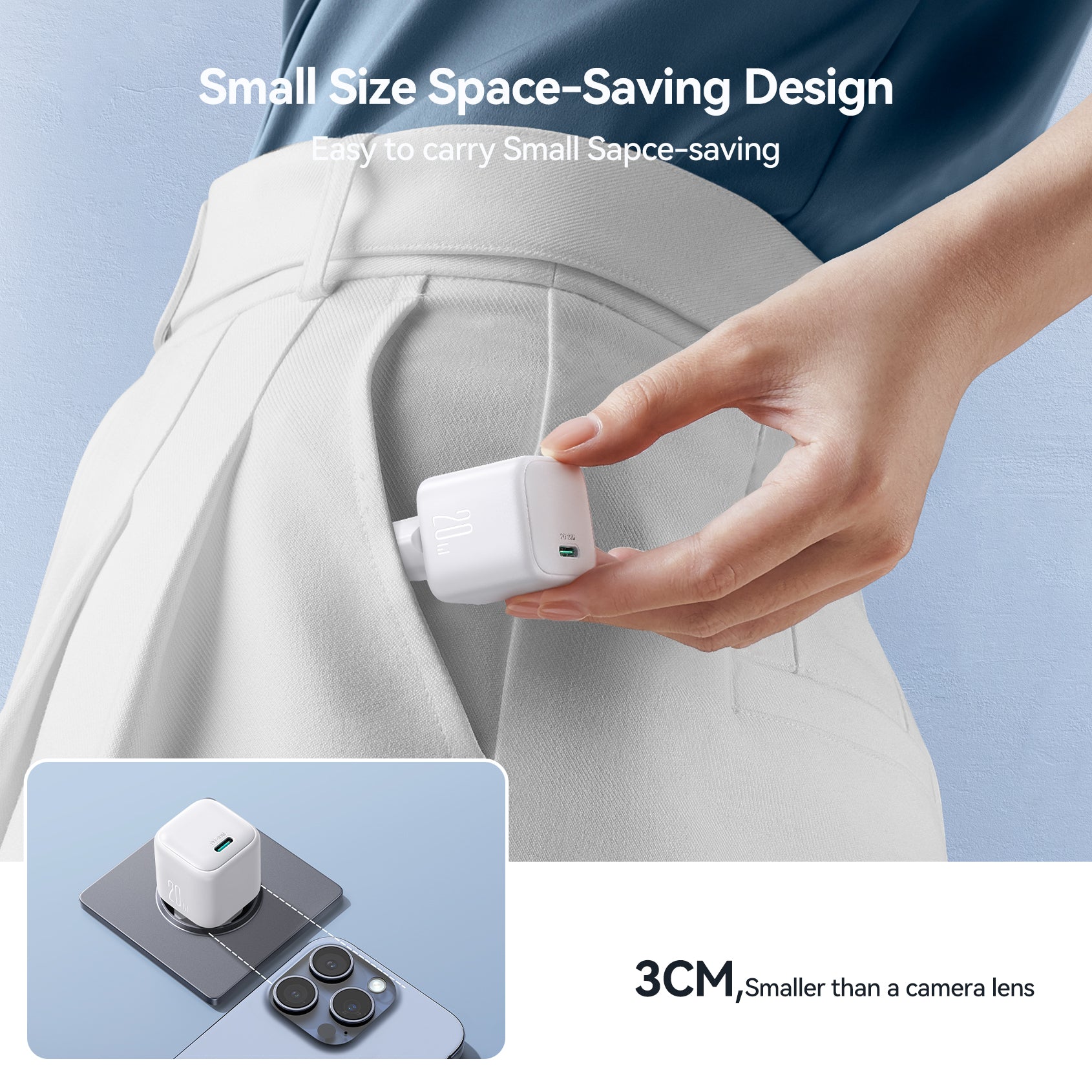 Compact size and lightweight design, 35% smaller than the original 20W charger.