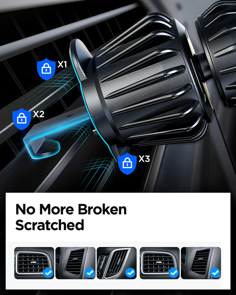 Experience the convenience of one-touch mounting with the Joyroom JR-ZS355 Magnetic Car Phone Mount. Its industrial-strength magnets guarantee a secure hold, while the robust air vent clip ensures steady positioning and effortless installation.