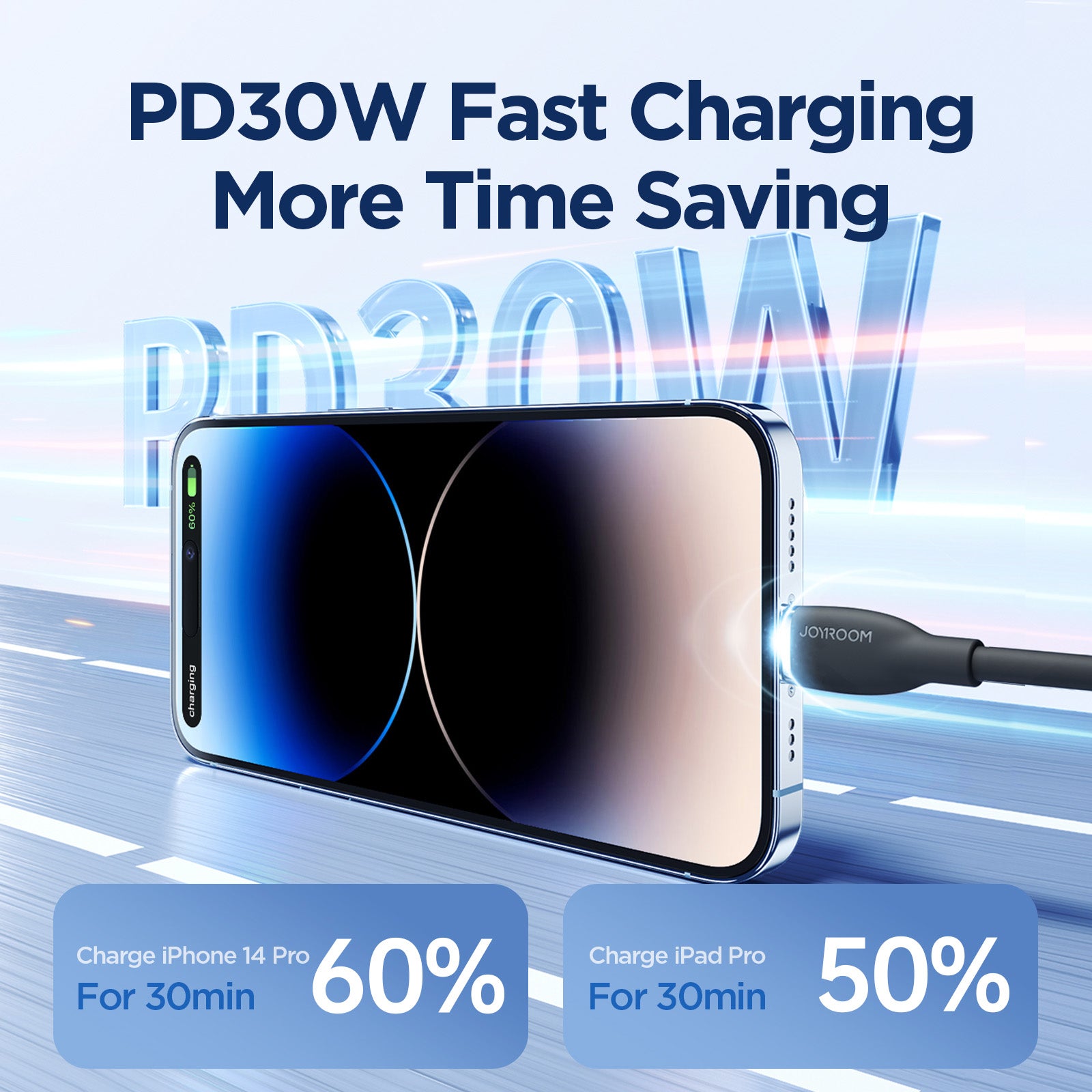 JoyRoom SA29-CL3/SA29-CC5 Silicone Cable Type-C to Lightning 30W/Type-C to Type-C 100W