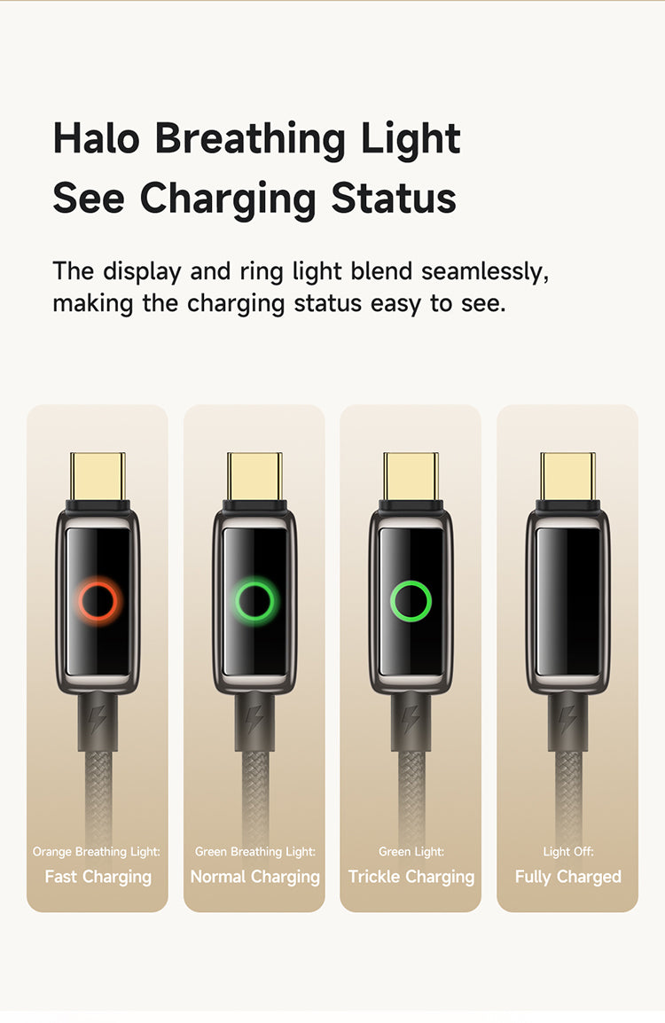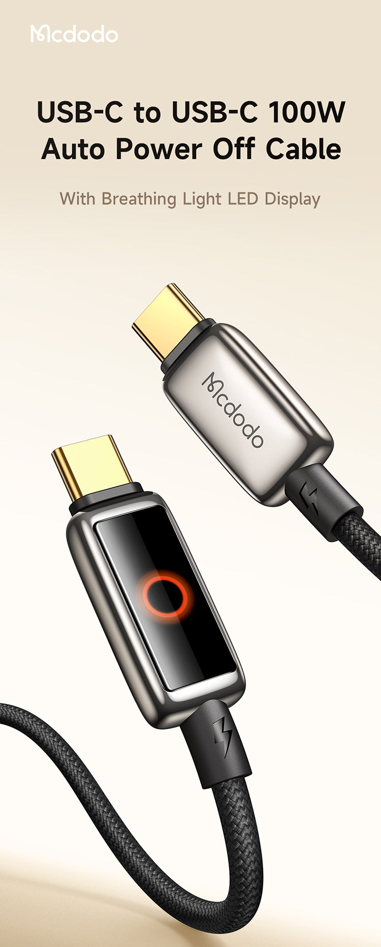 Mcdodo Auto Power Off 100W USB-C to USB-C with Breathing Light LED Display Data Cable