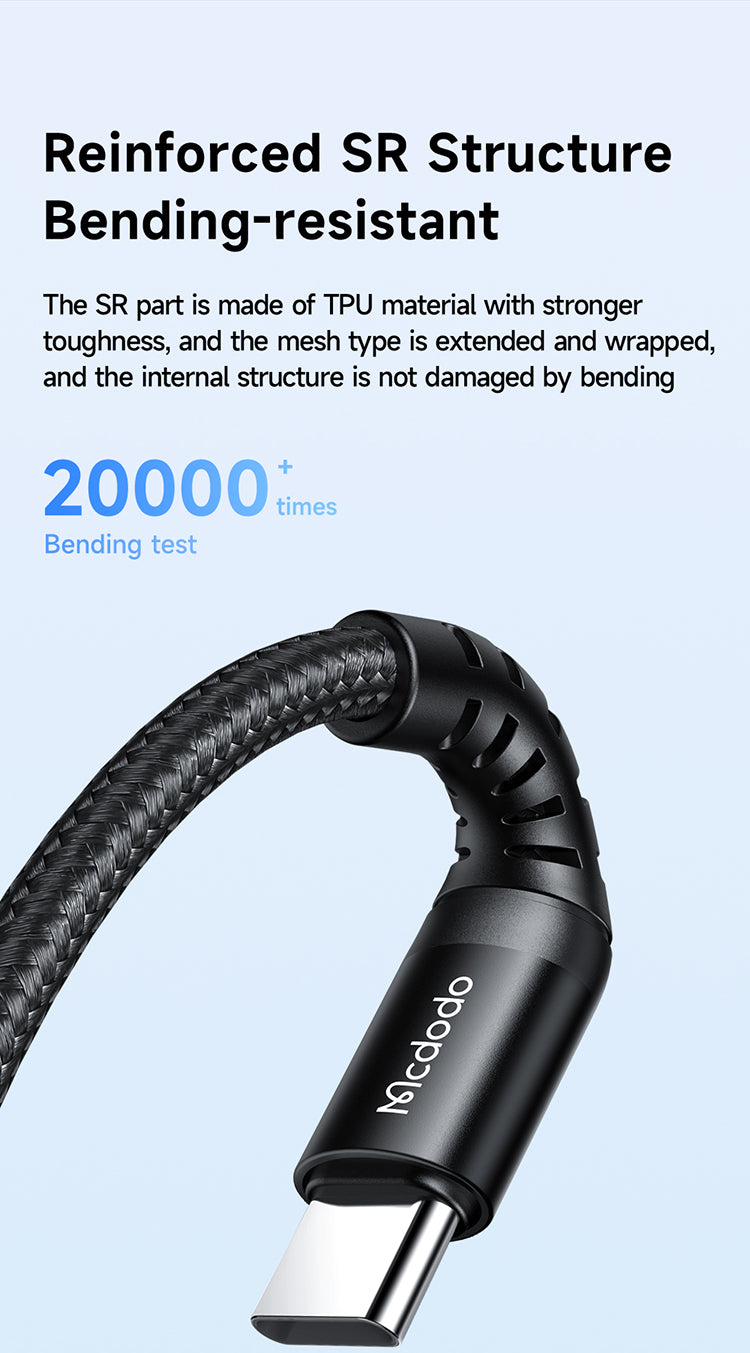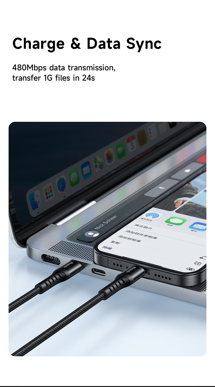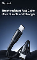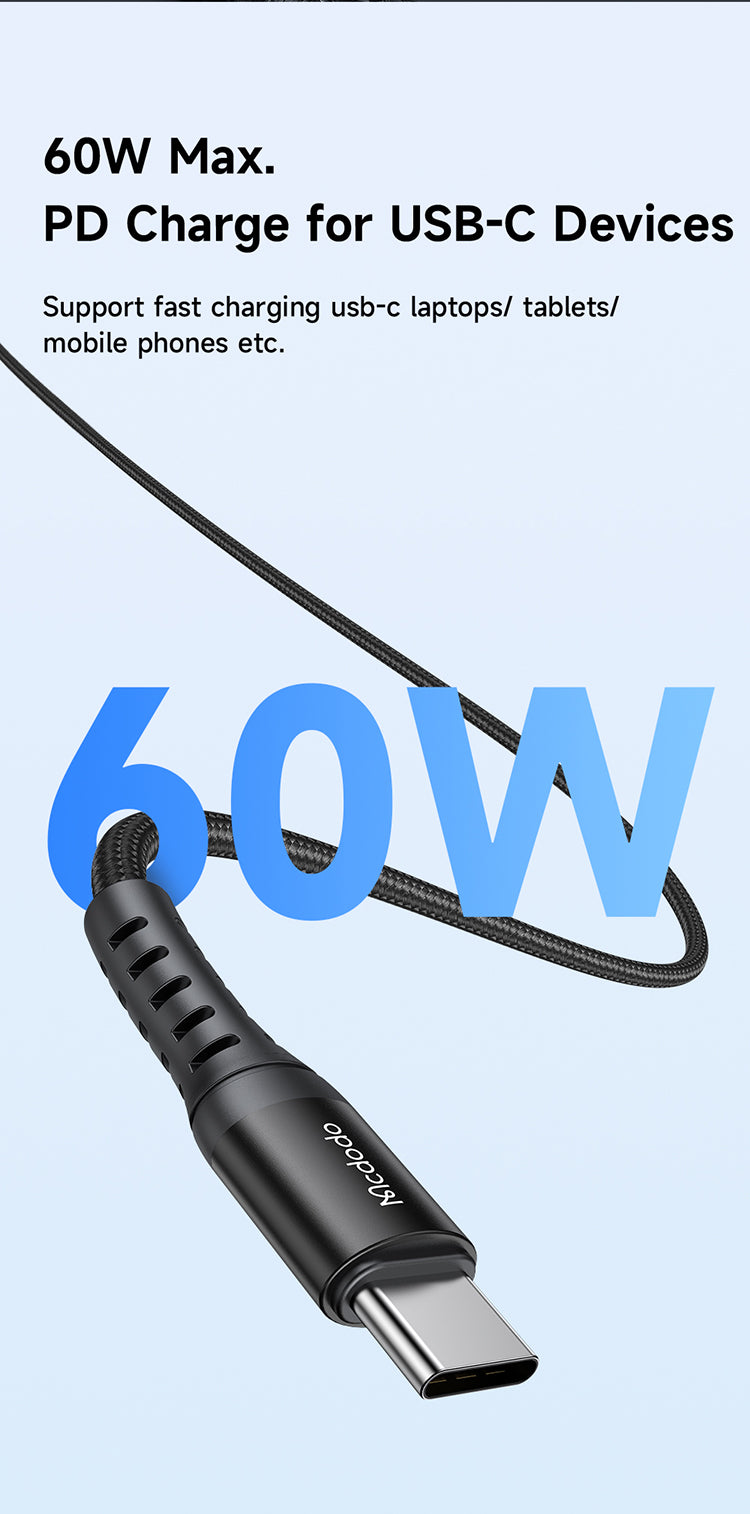 Fast charging with 60 W power. Forget about waiting for hours for your devices to fully charge! With Power Delivery (PD) technology of up to 60 W and 3 A current, the Mcdodo cable is ready to supply your devices with the necessary energy in no time. Whether you are on the go, at work, or at home, you can be sure that your smartphone, tablet, or laptop will be ready for use in a short time.