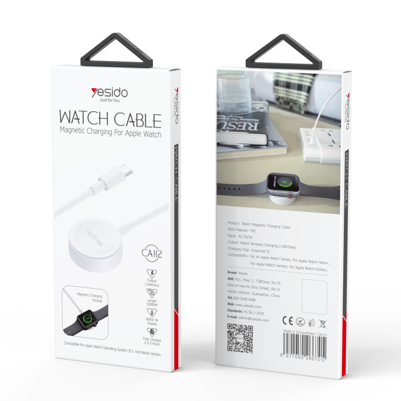 كابل الشحن المغناطيسي اللاسلكي Yesido CA112 هو ملحق أنيق وعملي مصمم لشحن ساعات Apple Watch بكفاءة وسرعة. إليك نظرة شاملة على مواصفاته وميزاته: