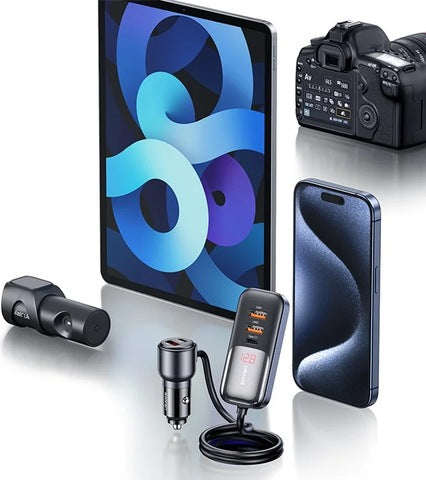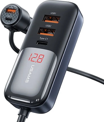 USAMS C40 165W 2C+3A PPS 5 Ports Digital Display Fast Car Charger With Data Cable