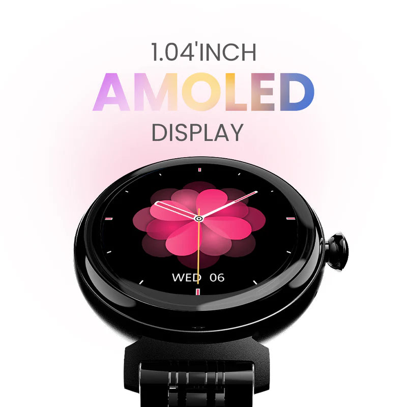 1.32 inch FHD full display, Resolution 360×360 pixels, IP68 Waterproof, 24/7 True heart rate & Blood oxygen sensor (the fourth generation), Stainless Steel, Up to 20 days daily use, 24 Sports Mode.