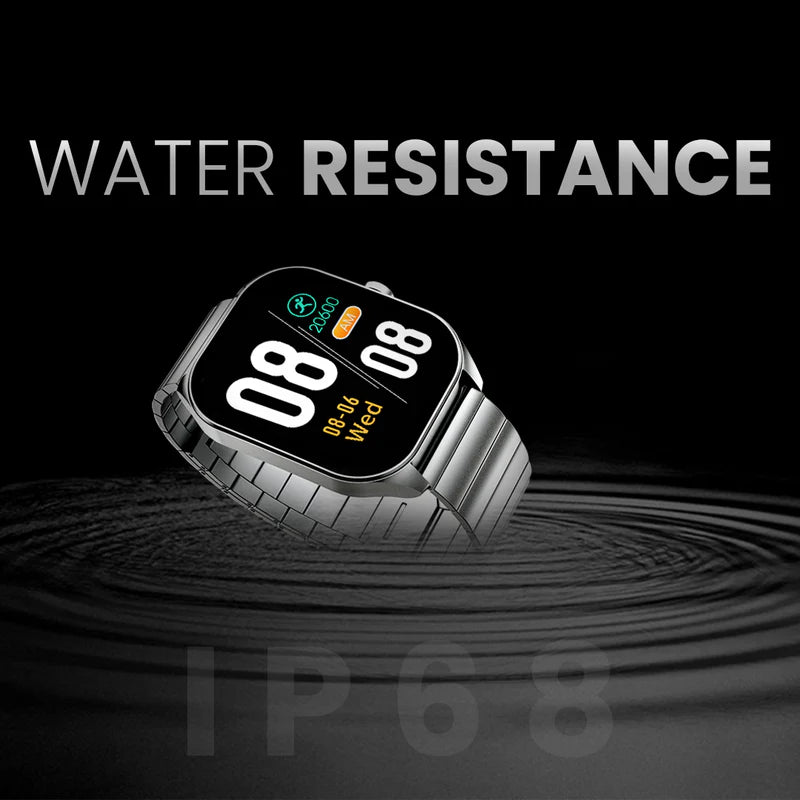 2.04" inch AMOLED Display, Resolution 368*448pixels, Bluetooth Call, IP68 Waterproof, 24/7 True heart rate & Blood oxygen sensor (the fifth generation), Stainless Steel, Up to 10 days.