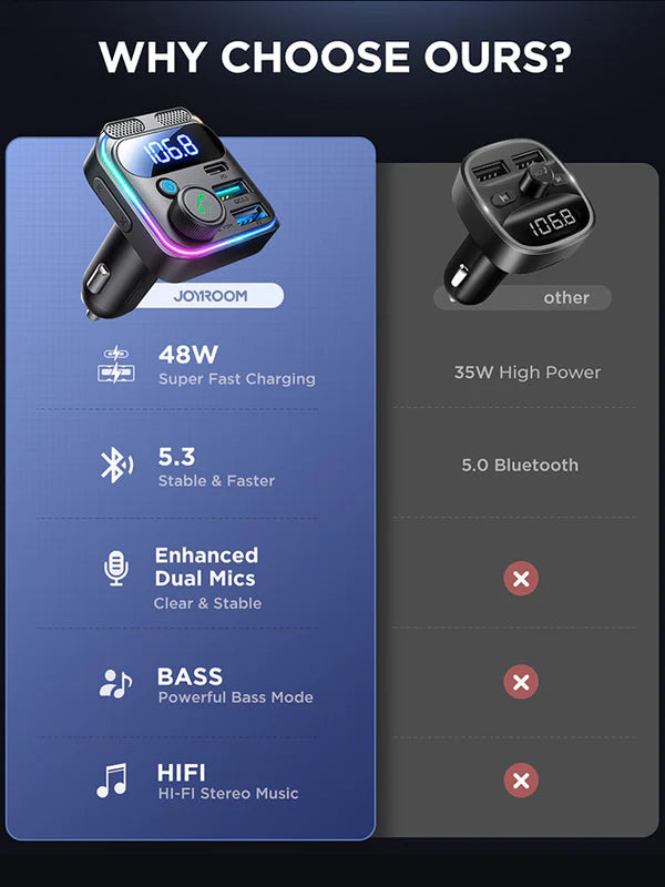 JoyRoom JR-CCB01 48W Dual-Mic Car Wireless FM Transmitter