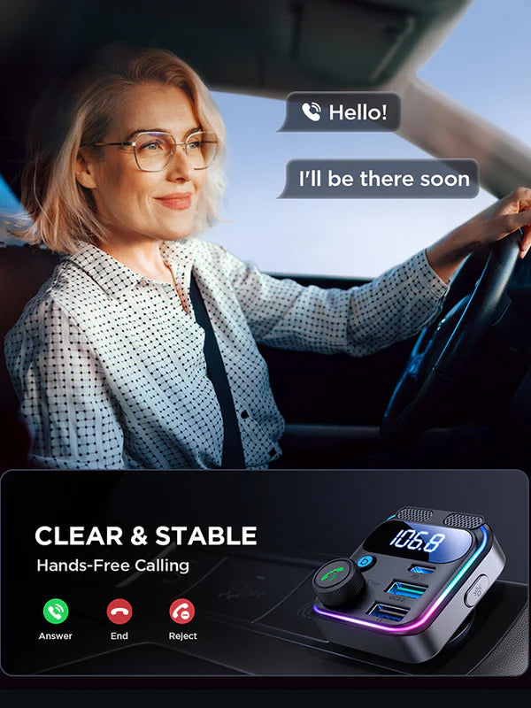 Wireless FM Technology: Stream music and calls through your car radio.