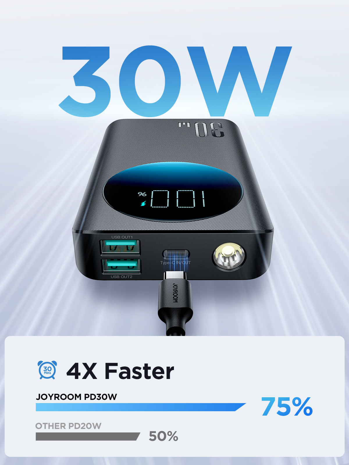 JoyRoom PBF01/PBF02/PBF03 30W LCD Screen Power Bank 10000mAh/20000mAh/30000mAh with Light