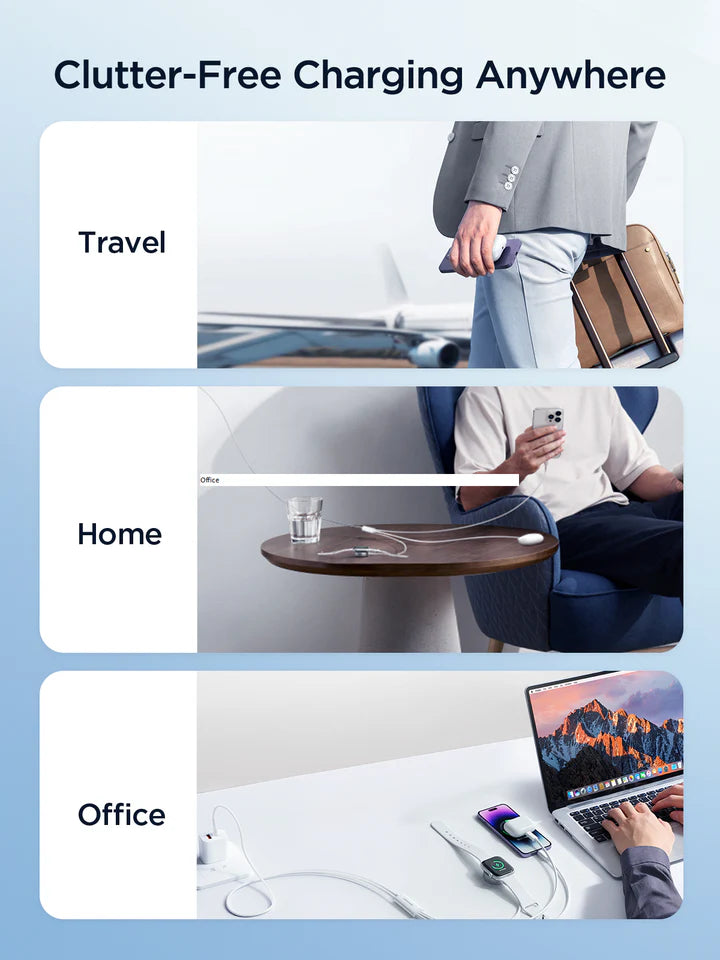 Charge 3 devices simultaneously, clutter-free, easy to carry.