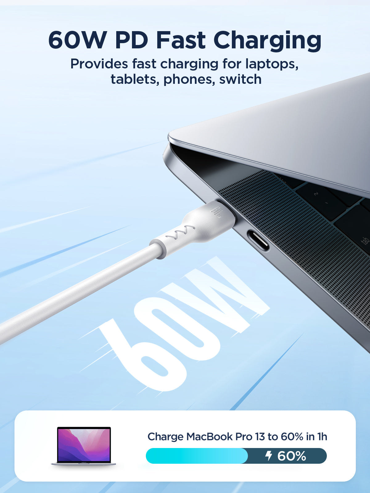 30W PD fast charging: Fully charge your device super quickly.