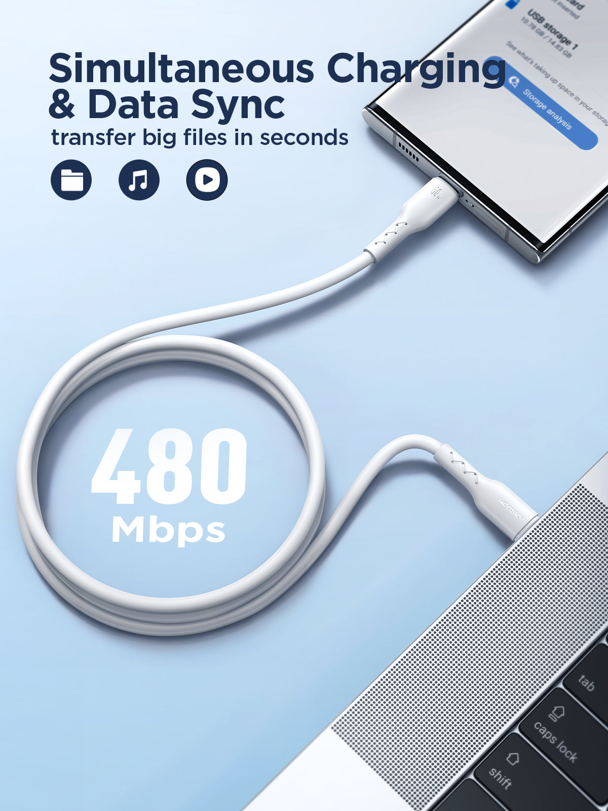 480Mbps data transfer speed: Efficient data transfer.