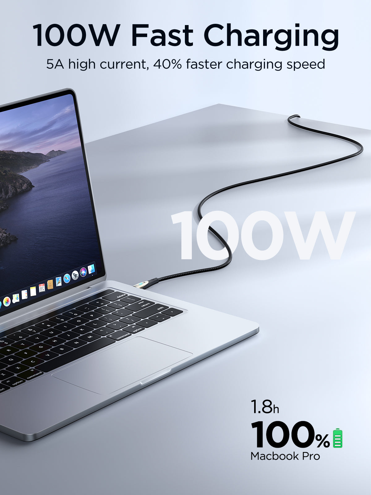 100W PD fast charging, for laptops, tablets, phones, switch, and more.