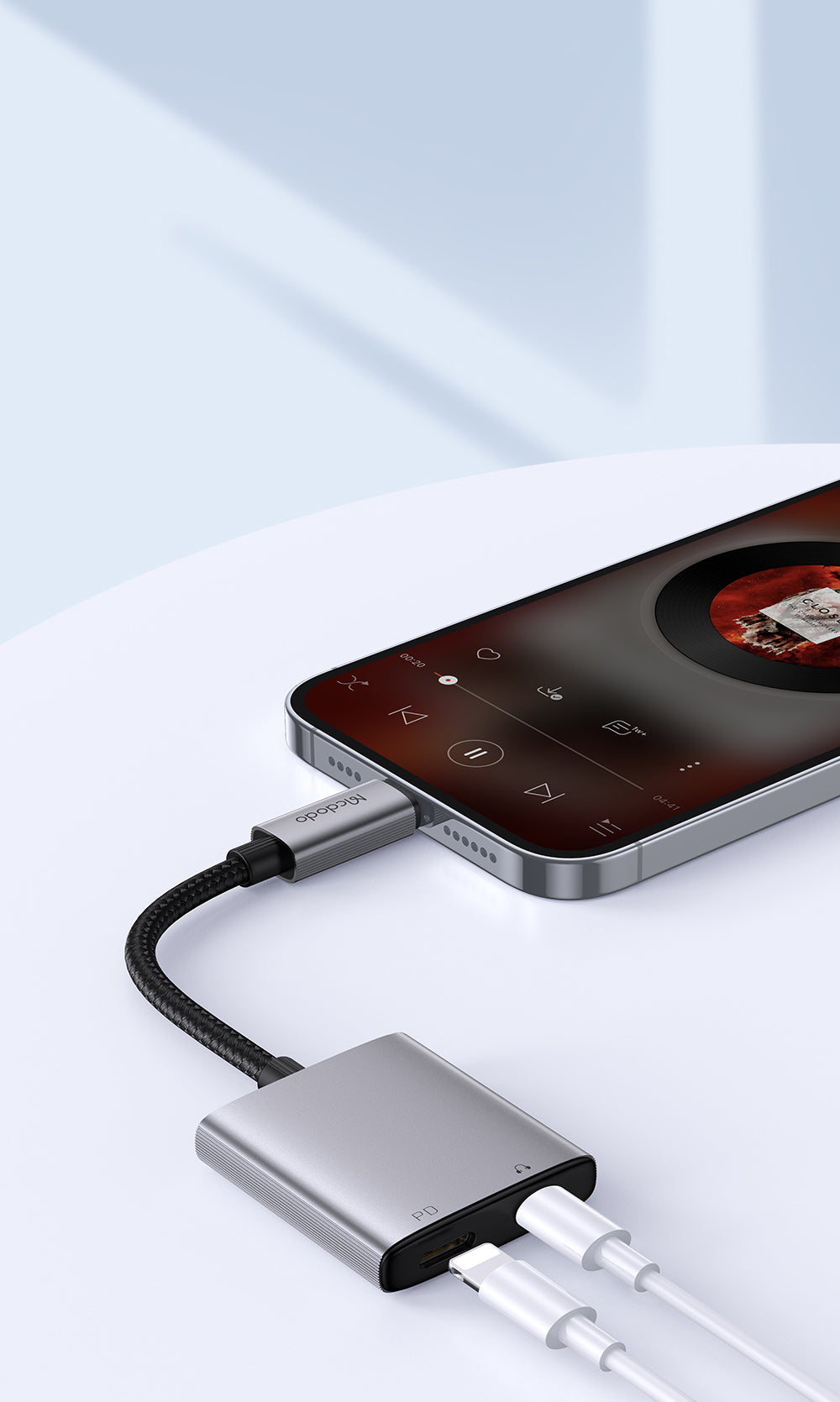 The Mcdodo 2-in-1 adapter is an innovative device that allows you to charge your phone while simultaneously using headphones with a Lightning connector. It features both a charging port and a Lightning audio port, providing iPhone users with full functionality without having to choose between charging and listening to music or taking calls. Thanks to a high-resolution decoding chip, the device guarantees clear sound without distortion and supports fast charging of up to 5V/2.4A.