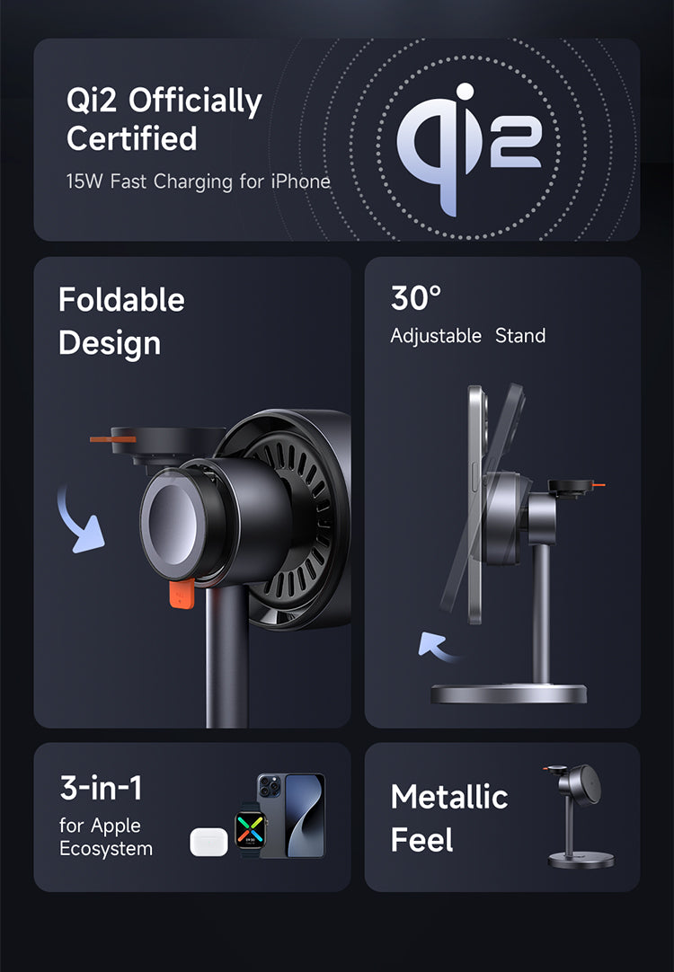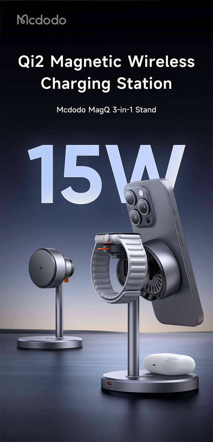 Mcdodo MagQ Qi2 Magnetic Wireless Charging Station 3- in-1 Stand