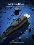 The cable is made of high-quality materials and is designed to be durable and flexible, with a TPE coating that provides resistance against tangling and wear and tear. The USB-A end of the cable can be connected to a computer or a wall charger, while the Lightning end can be plugged into your Apple device for charging and syncing data.
