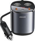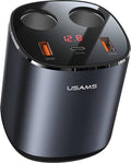USAMS C28 245W 2A+C 3 Ports + Dual Cigarette Lighters Digital Display Fast Car Charger