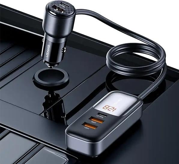 USAMS C40 165W 2C+3A PPS 5 Ports Digital Display Fast Car Charger With Data Cable